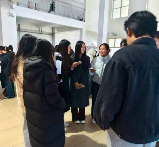 12月11日16:00-17:30,由商务英语教研室赵美云和刘祺老师组织指导的,商务英语(专升本)2503班、2504班共同承办,李嘉岐、连紫欣、张思佳、田厚望四位同学主持的第九期英语角活动,在通方楼一楼大厅温馨启幕。众多热爱英语的师生齐聚一堂,以“回顾、分享、跃向未来”为主题,在轻松互动中交流思想、提升口语,让语言学习成为一场充满温度的社交体验。