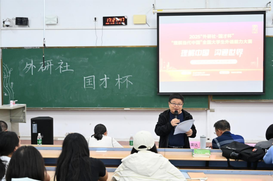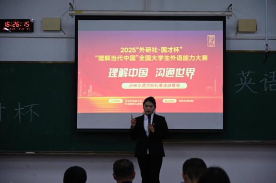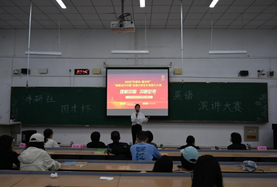 2025年9月23日下午4点10分,由我校外国语学院承办的河北省高等学校“世纪之星”“外研社·国才杯”“理解当代中国”英语演讲大赛校选赛决赛在通方楼A201教室隆重举行。本次比赛共有10名优秀选手同台竞技,各年级同学自发到场观摩学习。担任本次比赛的评委老师有:赵林静教授,王校羽教授,史亚娟教授,吴雷达教授,闫虹教授,马容教授。此外到场的嘉宾老师有:外国语学院副院长陈超老师,青年教师褚博文老师,柳天祐老师。