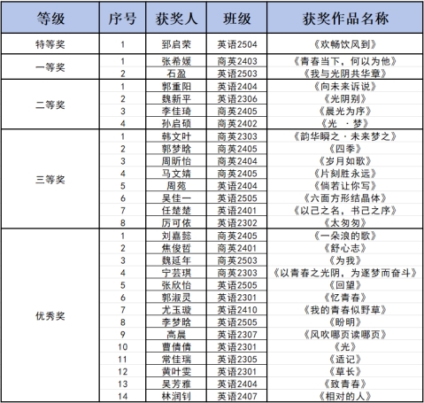 典礼最后,主持人对全体评委与指导老师的辛勤工作表示感谢。本次活动丰富了校园文化生活,展现出外院学生的文学素养与创作风采。