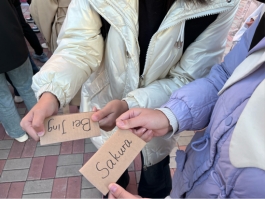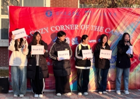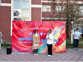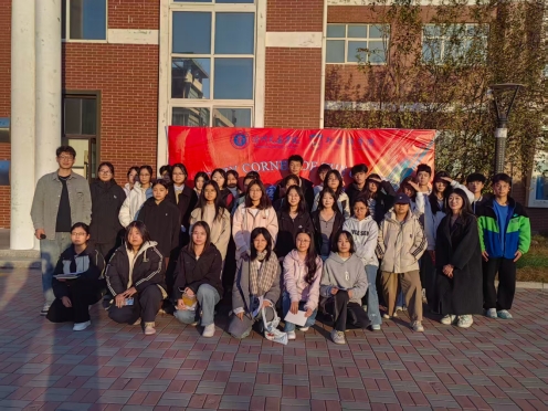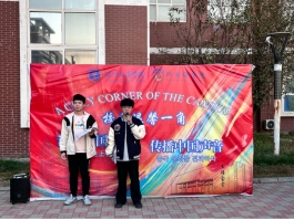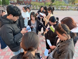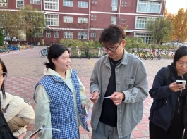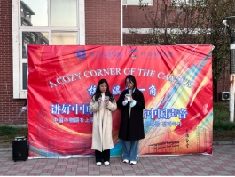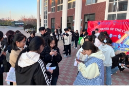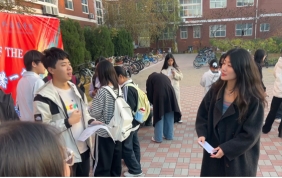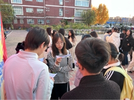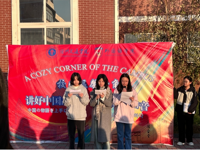2025年11月13日下午4点,由外国语学院主办的第五期校园英语角活动在通方楼门口温情开启。本次活动由伊云军老师、李旻老师带领不同班级的学生们共同参加。工商2504班郭昶乐、路欣萱以及李溢瑶担任主持人,众多热爱英语的同学齐聚一堂,围绕“榜样的力量”(The Power of Models)主题,在交流中传递力量,在表达中提升口语。