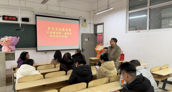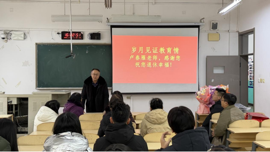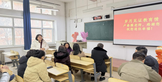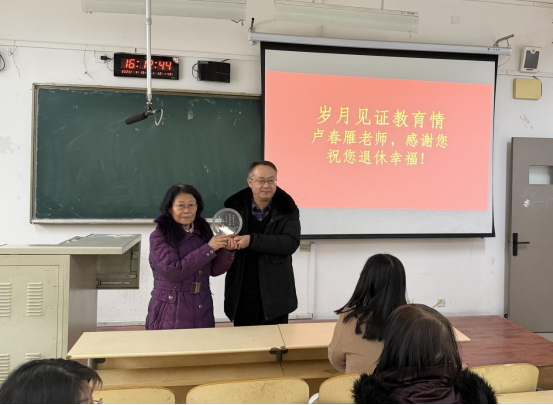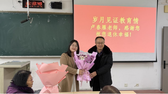 2026年1月19日下午,外国语学院于通方楼B210为卢春雁和刘祺两位老师举办荣休会和欢送会,以温馨而庄重的形式,致敬其多年来为学校外语教育事业作出的卓越贡献。学院领导及教师代表共同参会,现场气氛祥和,情谊真挚。
