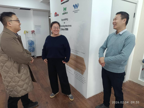 在海兴公司赵总、李总的陪同下,师生参观了办公区域及业务部门,了解日常运营流程与企业文化。通过近距离观察,学生对进出口贸易行业的工作内容有了直观认识,也为外语专业学生在相关领域的职业发展提供了参考。