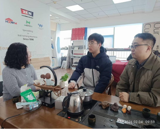 参观结束后,双方进行座谈。海兴公司李总分别介绍了公司发展、主营业务及行业趋势,强调了外语能力与国际贸易实务结合的重要性。陈超书记介绍了学院人才培养特色与毕业生情况,并提出共建实习实践基地的意向。学生还参与了人事经理陈辉组织的现场交流,就职业规划与能力要求等问题进行了探讨。