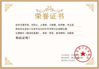 近日,由南京大学、清华大学联合主办的第三届“友邻杯”莎士比亚与跨文化学生戏剧节初赛圆满落幕,沧州交通学院外国语学院经过层层选拔,《错误的喜剧》剧组凭借精湛的表演功底和出色的舞台呈现拔得头筹,斩获入围资格,将代表我校在全国莎士比亚戏剧节的舞台与国内顶尖高校同台竞技展示风采,提升了我校知名度,彰显了我校外语教学改革与莎士比亚戏剧特色品牌活动的卓越成效,展现沧交学子扎实的语言功底与人文素养。
