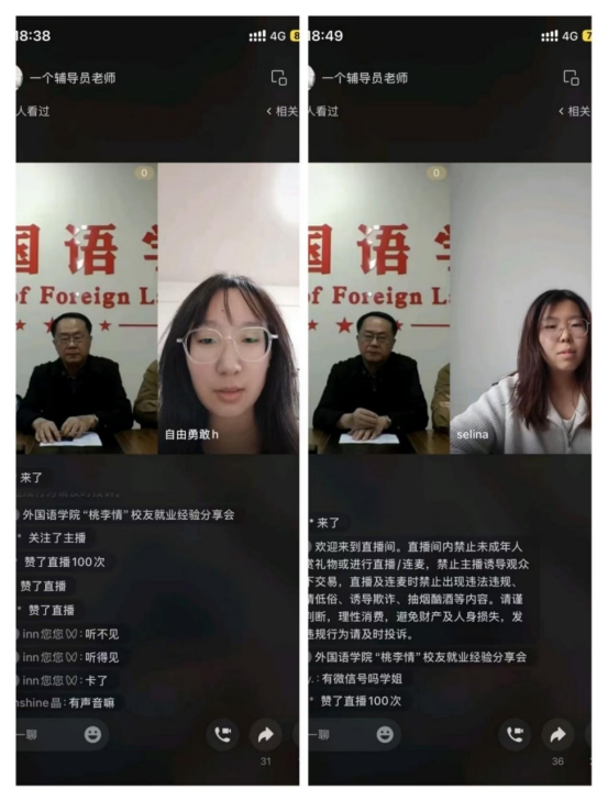 4月24日,外国语学院举办“桃李情”校友就业经验线上分享会。学院院长束光辉,团委书记张凯,2026届毕业生辅导员王晶晶和张晨雪应邀出席。分享会由2025届毕业生辅导员刘一霖主持,七位优秀校友以视频连线的方式,与师生及家长相聚云端。