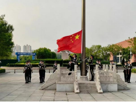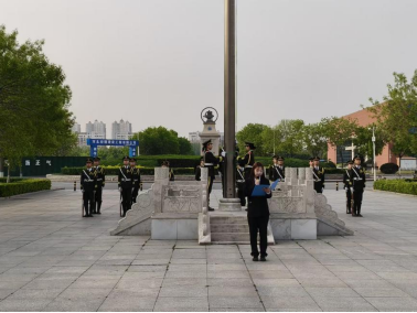 2026年4月27日,外国语学院在图书馆南侧举行升旗仪式并开展爱国主义教育。外国语学院党总支书记兼行政副院长陈超,团委书记、学生工作办公室主任张凯,辅导员刘一霖等9名老师,以及2025级全体学生、入党积极分子和“青马工程”学员共同参加了本次活动。