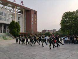 早7时整,升旗仪式正式开始。国旗护卫队队员护送五星红旗走向升旗台,全体师生肃立于升旗台前。伴随着《义勇军进行曲》,五星红旗冉冉升起,全体师生行注目礼并高唱国歌。