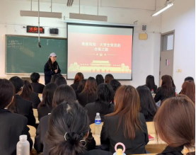 2025年11月4日下午16:00,外国语学院在通方楼B105举办“坚定理想信念,勇担时代使命”专题党课,由艺术学院第二党支部书记刘凤梅老师进行主讲。